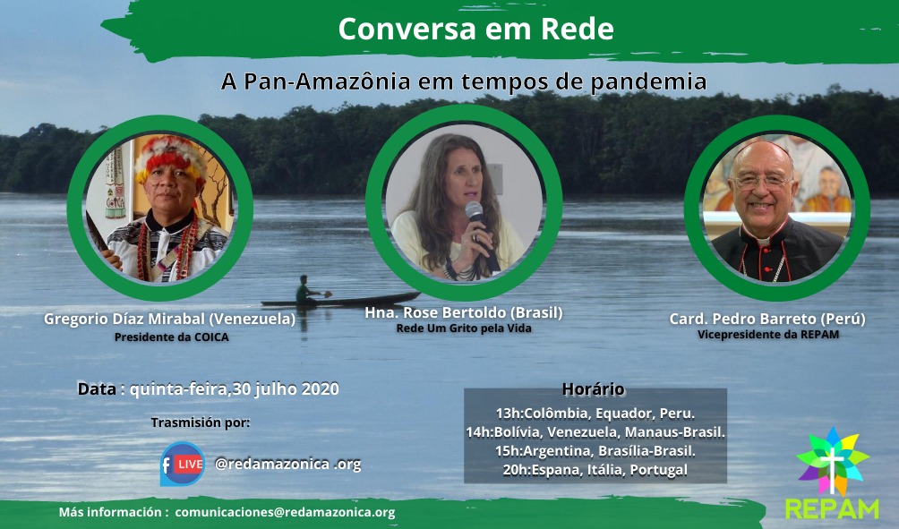El próximo jueves, 30 de julio, la REPAM organiza su primer CONVERSATORIO EN RED para visibilizar la situación de la Panamazonía en época de pandemia: las dificultades y signos de muerte, y las acciones concretas y signos de esperanza y vida que se viene realizando.