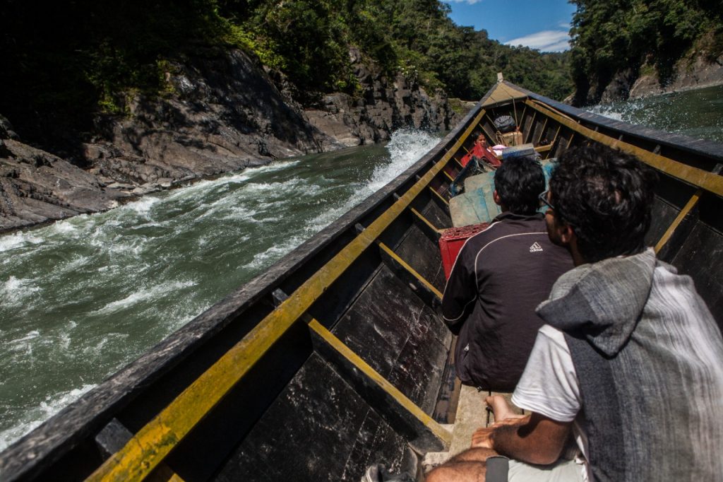 Siendo el misionero que más ha surcado el Pongo de Mainique para ir a las misiones de Koribeni (Alto Urubamba) y Timpía (Bajo Urubamba), he estado en riesgo de naufragar en varias ocasiones. Recuerdo con lucidez la primera vez que lo surqué en octubre de 2004. Solo tres personas navegábamos en aquel bote: el piloto, el puntero y yo. Pero había más. Junto a mí yacían un toro muerto y sangrado, que encharcaba de rojo toda la lancha, y una vaca que no dejaba de moverse meciendo también la frágil embarcación.