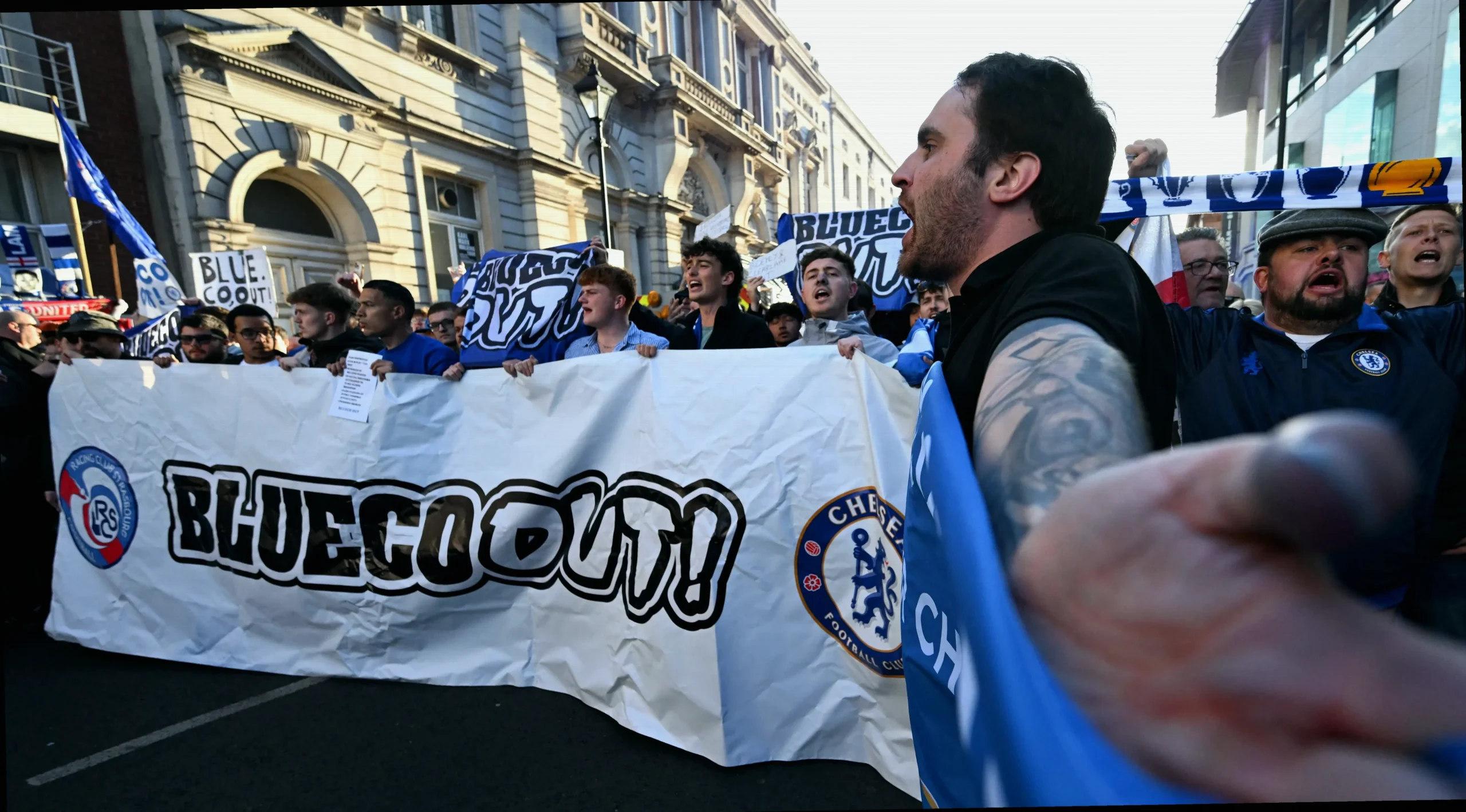 Un elemento distintivo fue la presencia de aficionados procedentes de Francia. Varios de ellos viajaron expresamente a Londres para expresar su enfado, convencidos de que el RC Strasbourg ha quedado relegado a un papel secundario dentro de la estructura del grupo: como si fuera un “B team” o un “club satélite” que funciona para alimentar al Chelsea y no como una entidad con objetivos propios.