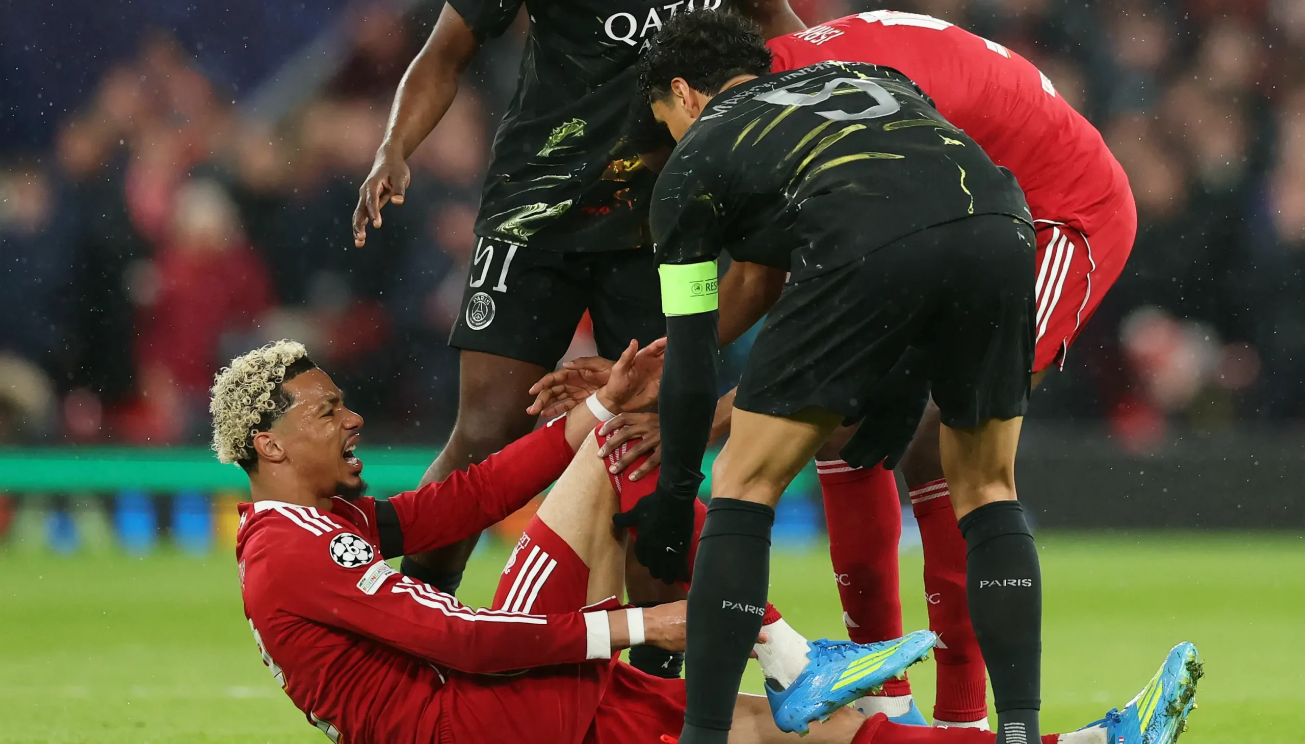 El encuentro estaba en una fase temprana y el escenario era exigente: Liverpool debía marcar y, con cada minuto, apretaba para generar ocasiones. Sin embargo, el problema llegó cuando Ekitike —con el contexto especial de medirse a su exclub— pareció engancharse con el césped y perder el control del apoyo. La reacción inmediata fue la preocupación de sus propios compañeros y del cuerpo médico, que se movilizó de inmediato.