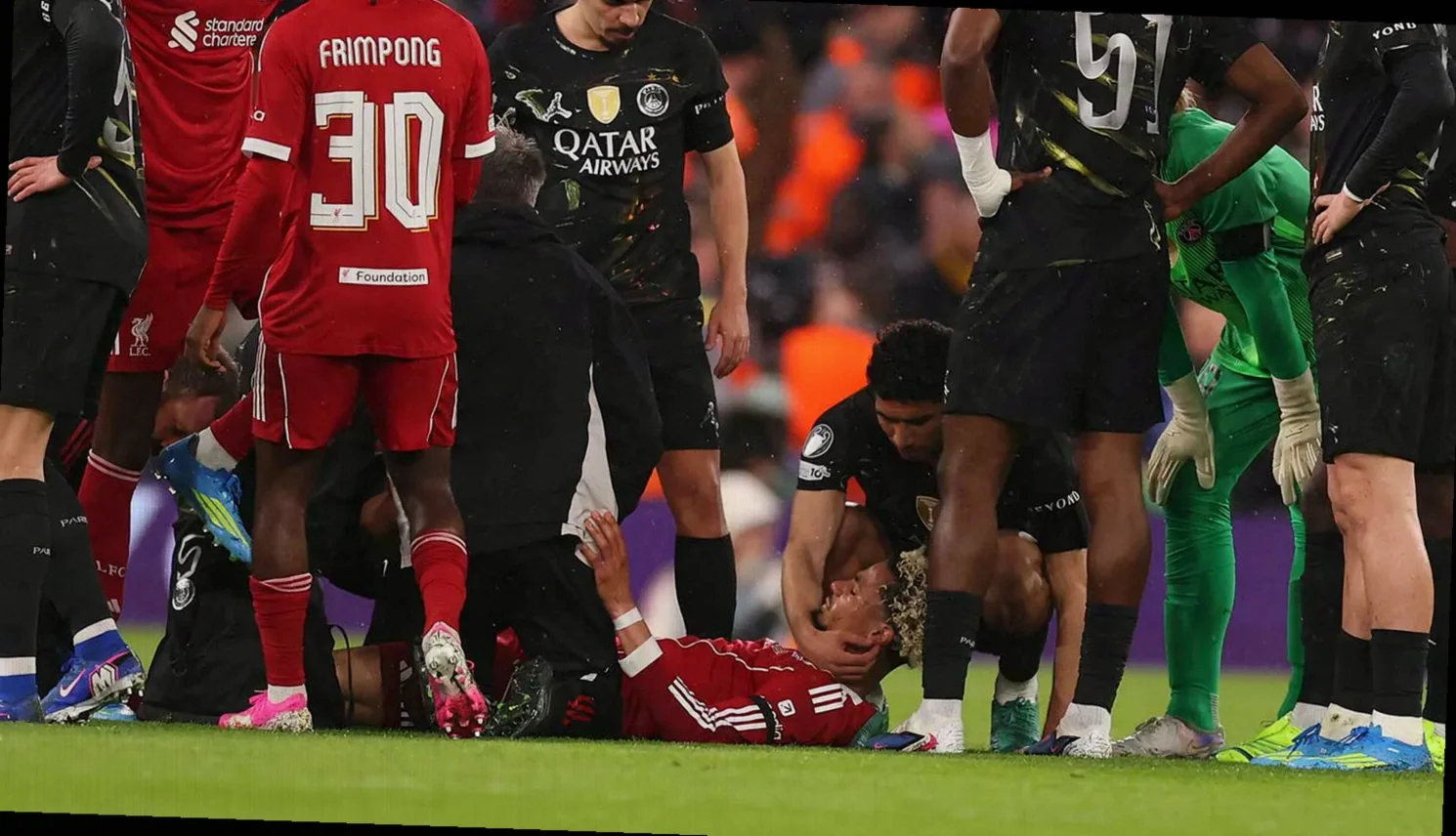 Los servicios médicos entraron con rapidez. En medio del incidente, jugadores del equipo rival, Achraf Hakimi y Willian Pacho, se acercaron para brindar apoyo al delantero, sujetándolo de las manos durante la atención inicial. Ese tipo de gestos suelen reflejar la preocupación inmediata en una lesión que, por la forma en que se produjo y por la reacción del futbolista, ya parecía potencialmente grave.