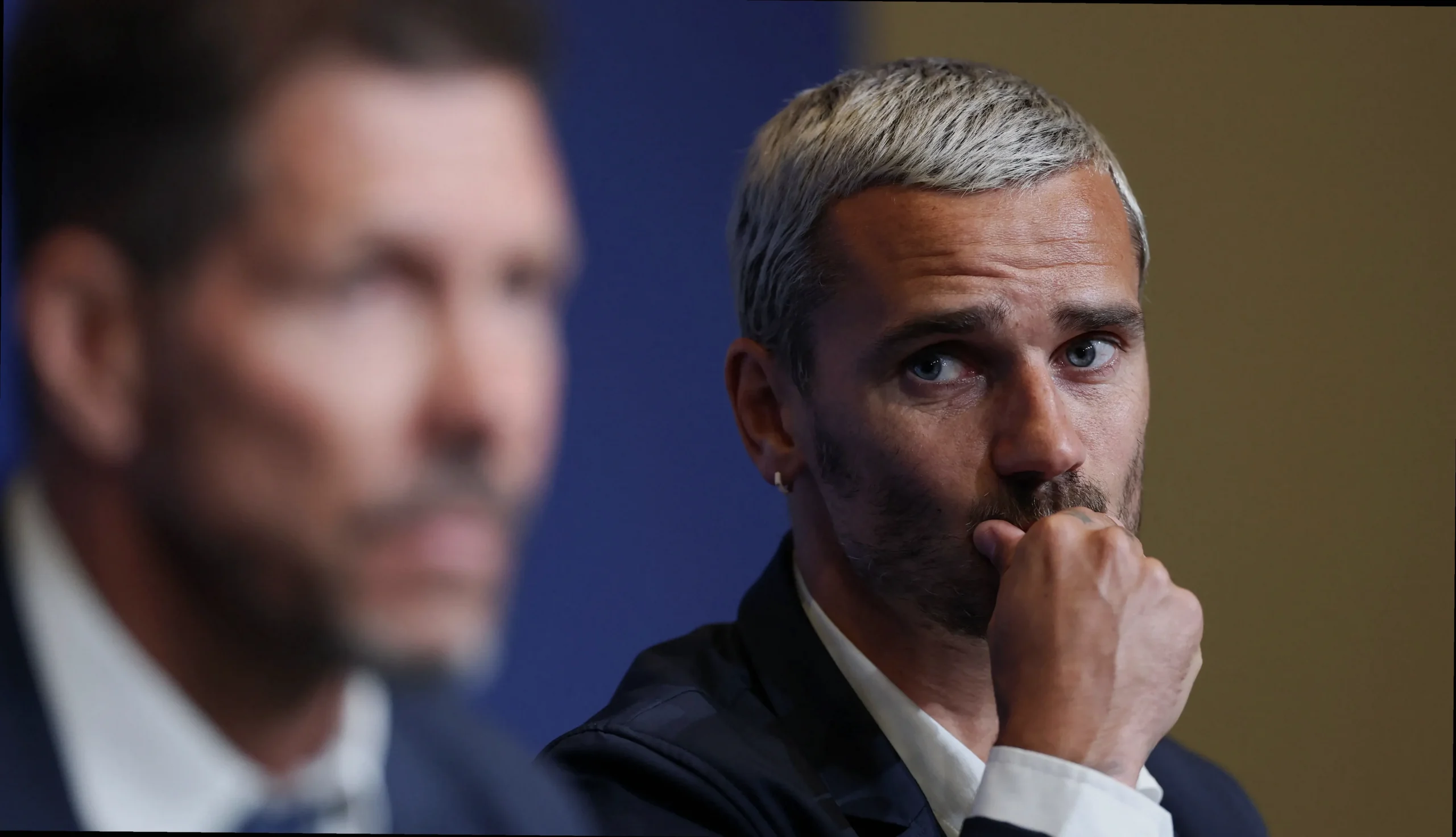 “Excuse me, excuse me… Antes de que empiecen las preguntas, quería, desde mi perspectiva como entrenador y como aficionado del Atlético, que Antoine estuviera en esta rueda de prensa”, expresó Simeone.
